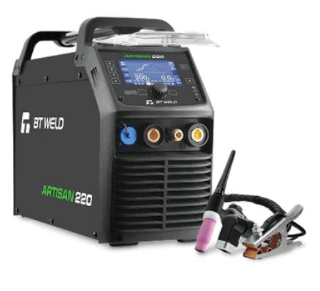 BT Weld ARTISAN 220W Water Cooled AC/DC 240V. Water-cooled 220A AC/DC TIG welder. Full pulse control, square wave AC for aluminium. Includes water cooler and torch. 240V single phase, 35kg total.