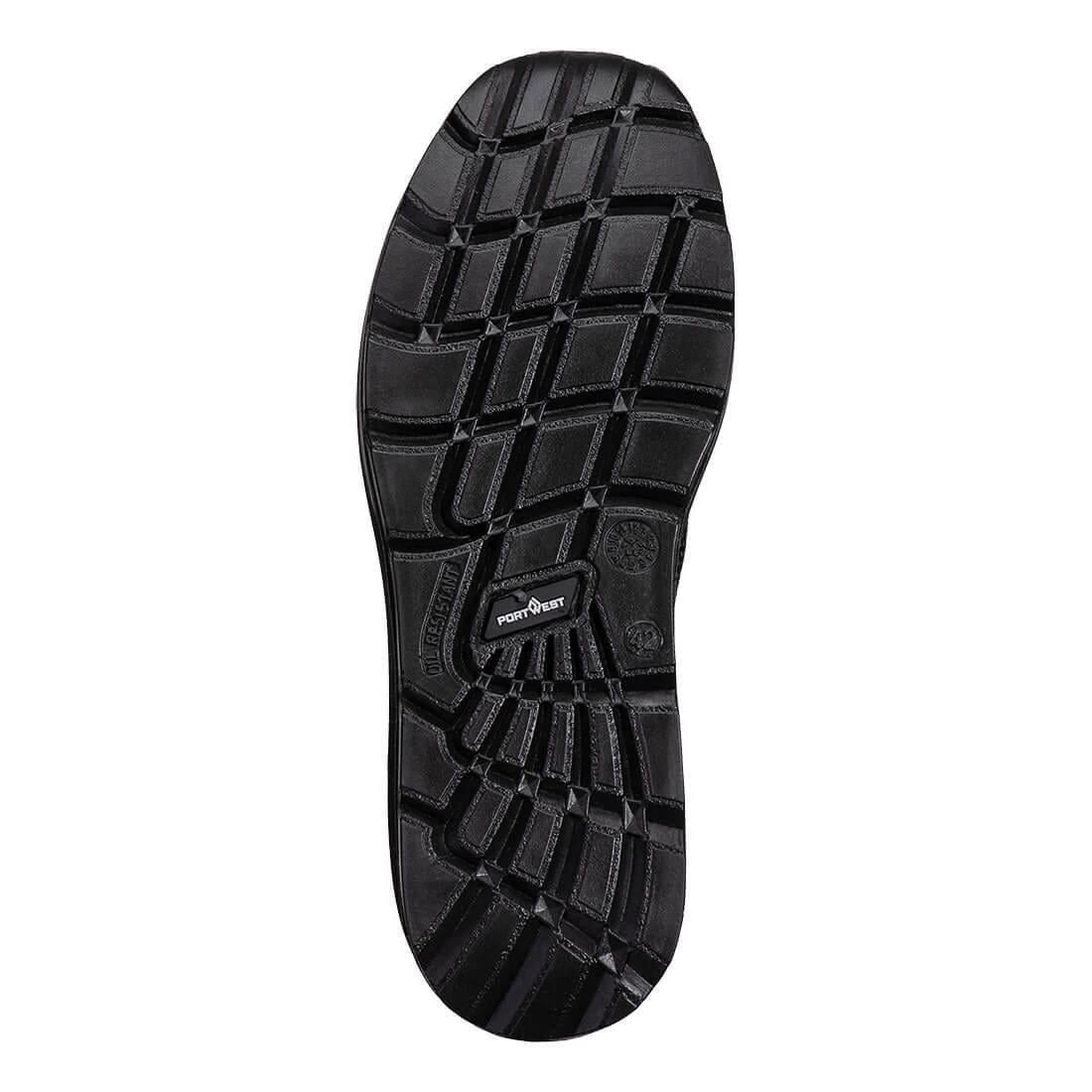 This is a safety trainer with composite toecap, puncture resistant textile midsole and dual density PU/PU outsole for superior grip and energy absorption. The upper is made of a seamless, knitted, single piece of textile with a padded collar for added comfort.