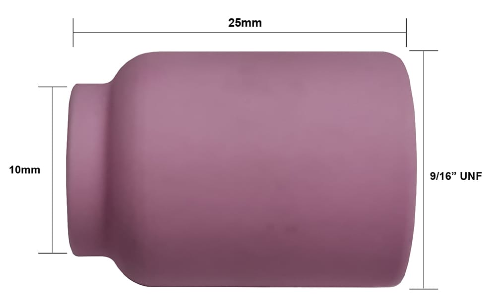 Pack of 2 alumina gas lens cups, Size 6 (10mm internal diameter). For WP-17, WP-18, WP-26 torches with gas lens. Enhanced shielding for medium welds.