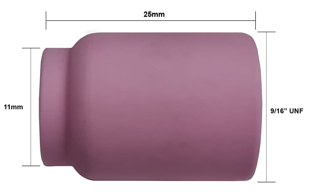 Pack of 2 alumina gas lens cups, Size 7 (11mm internal diameter). For WP-17, WP-18, WP-26 torches with gas lens. Wider coverage for larger joints.