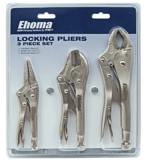 EHOMA 3 PIECE LOCKING PLIER SET, ROUND JAW 250MM, STRAIGHT JAW 175MM & LONG NOSE 150MM