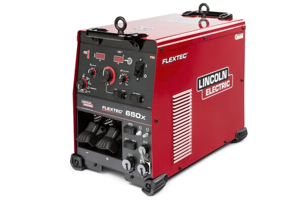 This multi-process welder delivers up to 815 amps of welding power for a variety of applications, including construction, shipbuilding and heavy fabrication. Embedded CrossLinc® Technology drives welding control at the arc without an added cable to save costs, increase quality and enhance productivity and safety on the job site. The world-ready Flextec® 650X will run on a wide range of available voltage input power and is IP23 rated for outdoor operation and storage. Broad wire feeder compatibility is not an issue The Flextec 650X will operate with almost any Lincoln Electric® wire feeder or welding process. Simple. Reliable. Flexible. Specify the Flextec 650X for your heavy duty applications.