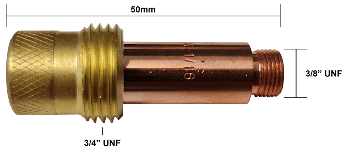 Pack of 2 gas lens collet bodies, 1.6mm. For WP-17/18/26 TIG torches. Standard. Packed in sealed plastic bag with header card.