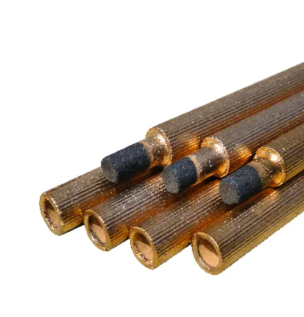 Pack of 10 jointed copper-coated DC round gouging carbons, 13mm diameter x 430mm. Extended length with threaded joint for deep, continuous gouging in hard-to-reach areas.