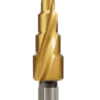 SDL4-12MM HOLEMAKER STEP DRILL, SPIRAL FLUTE, 9 STEPS, 5.5MM STEP LENGTH, 4 - 12MM Sizes: 4, 5, 6, 7, 8, 9, 10, 11, 12mm Step Length: 5.5mm Overall Length: 63.6mm Shank Diameter: 8mm $ 84.00 ex-GST