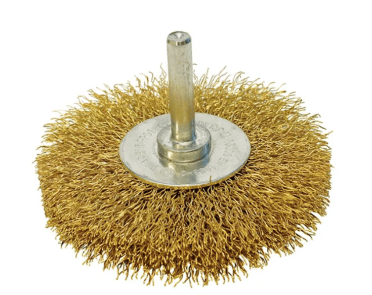 ITM CRIMP WIRE WHEEL BRUSH BRASS HIGH SPEED 75MM X 18MM, 1/4″ ROUND SHANK