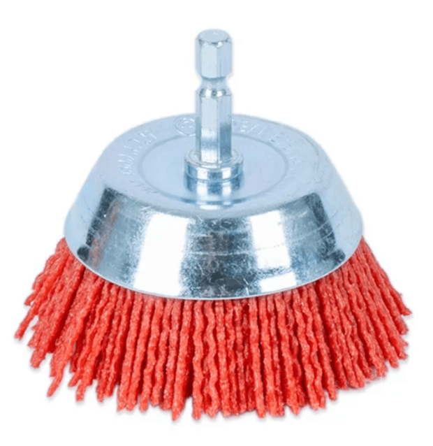 ITM NYLON SPINDLE MOUNTED CUP BRUSH 75MM, 80 GRIT, 1/4″ HEX SHANK