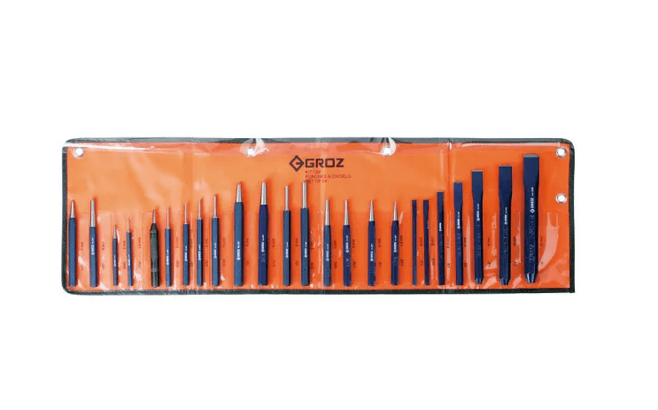 Cold Chisels: 6 x 125mm, 8 x 125mm, 10 x 140mm, 13 x 150mm, 16 x 163mm, 19 x 175mm, 22 x 190mm