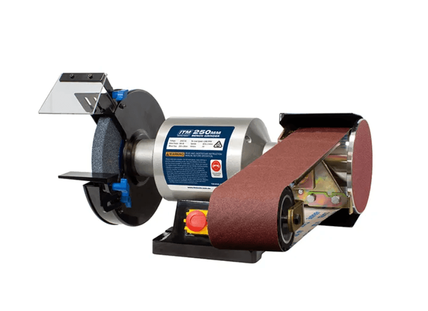 Combine the robust TM400-250 ITM 250mm Bench Grinder with one of Australia’s leading belt grinding attachments PO484.
