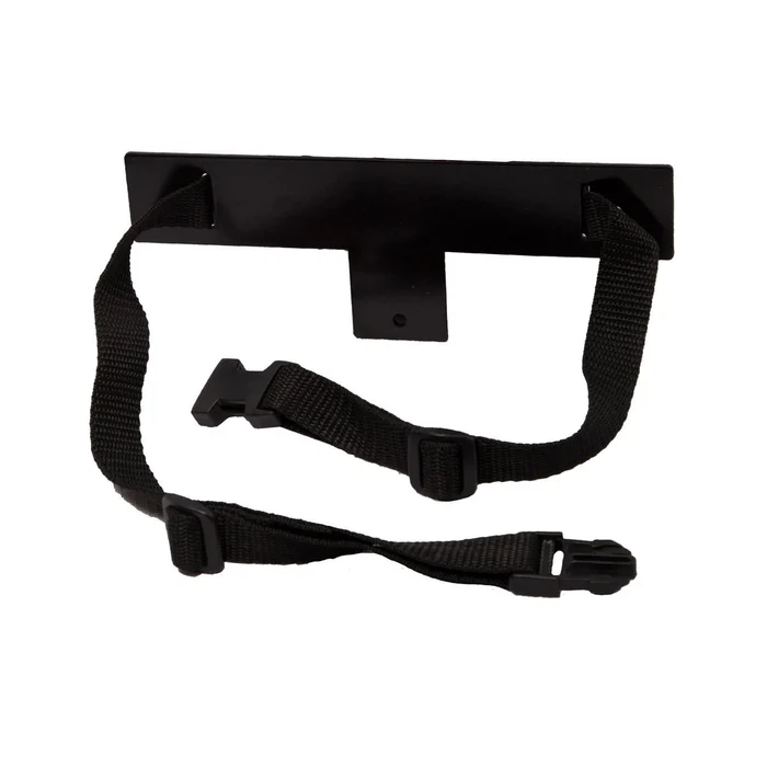 Durable plastic wall plate with attached extendable straps with a quick release buckle to easily attach sharps containers.