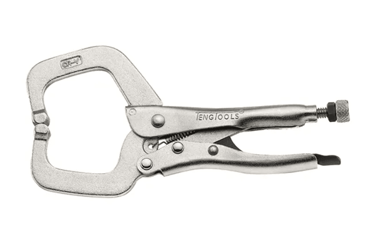 11″ Non Pinch C Clamp Power Grip PliersNon pinch one hand operation for easier useSelf locking with release leverWith locking nut on adjustment knob for pre-setting, ideal for repeated useChrome vanadium with nickel plating