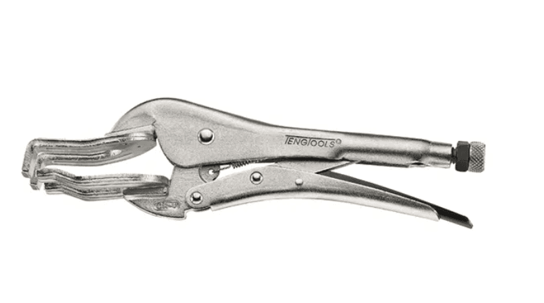 11″ Welding Power Grip PliersNon pinch one hand operation for easier useSelf locking with release leverWith locking nut on adjustment knob for pre-setting, ideal for repeated useChrome vanadium with nickel plating