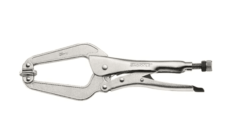 12″ Self Levelling Swivel Clamp Power Grip PliersSwivel pads for a self levelling grip when clampingNon pinch one hand operation for easier useSelf locking with release leverWith locking nut on adjustment knob for pre-setting, ideal for repeated useChrome vanadium with nickel plating