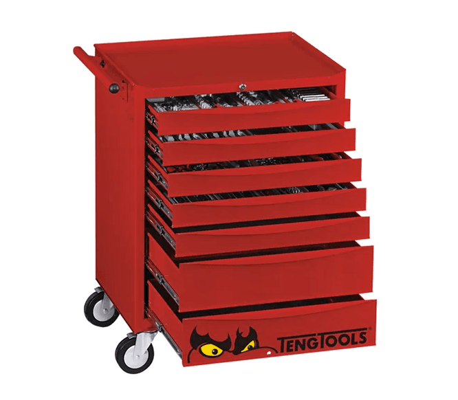 - Supplied in a red TengTools 26″ standard 7 drawer roller cabinet