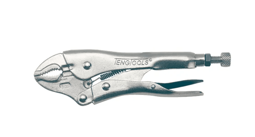 4″ Curved Jaw Power Grip PlierSelf locking with release leverWith locking nut on adjustment knob for pre-setting, ideal for repeated useWire cutter and crimper functionChrome molybdenum