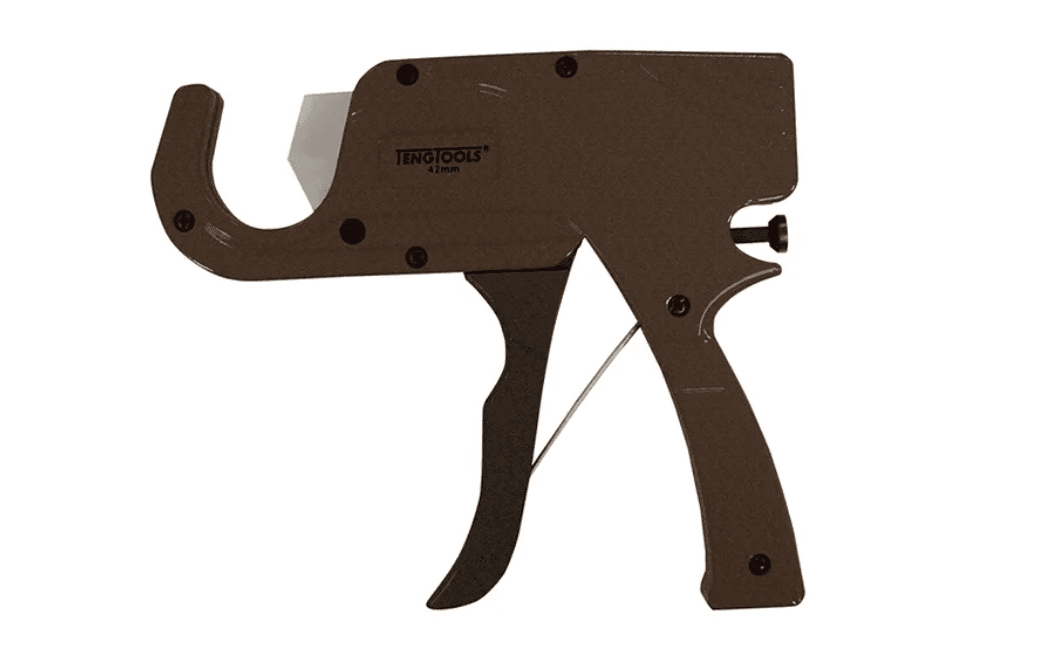 Pipe Cutter 42mm Capacity PE TubingCuts PEX or XLPE polythene tubing and other similar soft plastic piping up to 42mm diameterGives a right angled and burr free cutA pistol grip style handle for more comfortable useA simple ratchet mechanism engages the cutter step by step to give more control over the cutting action