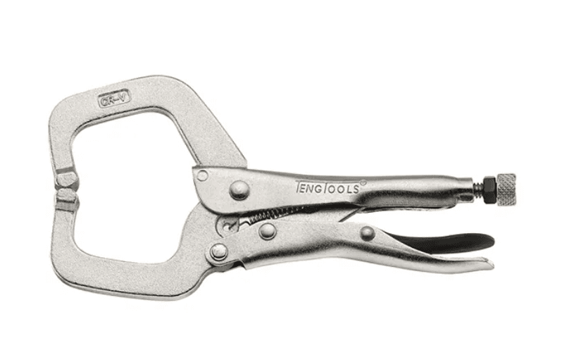 6″ C Clamp Power Grip PliersSelf locking with release leverWith locking nut on adjustment knob for pre-setting, ideal for repeated useChrome vanadium with nickel plating