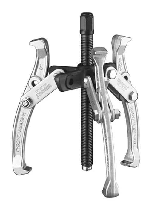 - Simple to use three legged puller for the fast removal of pulleys, wheels and bearings