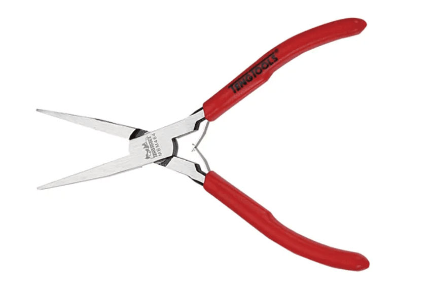 5″ Mini Flat Nose PlierLong straight jaws for easier accessHigh carbon steel constructionReturn spring for easier operationVinyl grip for easier use in pockets or tool pouches