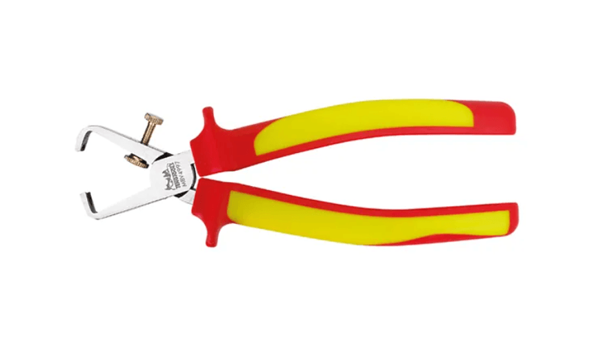 7″ Wire Stripping Pliers 1,000 Volt Insulated7″ 1,000 volt insulated wire stripping pliersApproved for live working up to 1,000 voltsChrome molybdenum alloy steel for durability and strengthWith adjuster screw to suit wire diameters from 0.2 to 4.5mmReturn spring for easier operationTPR grip for a more secure and comfortable gripDesigned and manufactured to IEC 60900