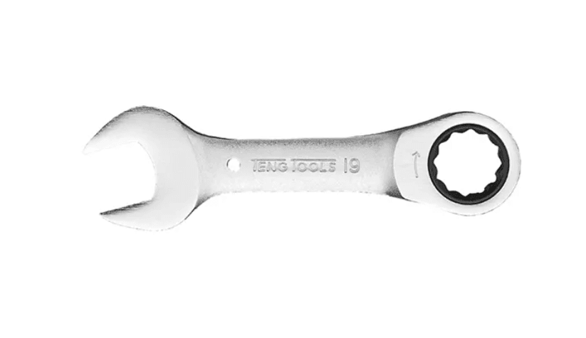 - A ratcheting ring and open ended spanner combined with the same size at each end